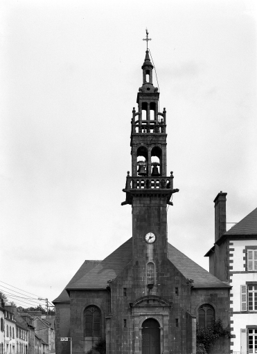 Edifice de style néo-classique qui se compare à l'église paroissiale de Plonéour-Lanvern. Elévation ouest et clocher néo-Renaissance comme Brest, Plouvien et Saint-Pierre-Quilbignon. L'unité du lieu est remarquable, il s'agit d'un élément d'urbanisme planifié s'intégrant au sein d'une place aménagée à la même époque. Etat sanitaire satisfaisant. Traces d'humidité dans la sacristie sud.