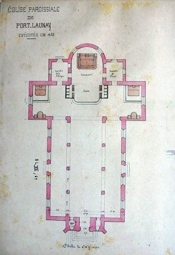 Edifice construit à l'emplacement d'une ancienne chapelle Saint-Nicolas entre 1854 et 1858 d'après les plans de l'architecte diocésain Joseph Bigot après que Port-Launay soit érigée en paroisse et en commune en 1847. Travaux exécutés par l´entrepreneur en maçonnerie Le Quéau.