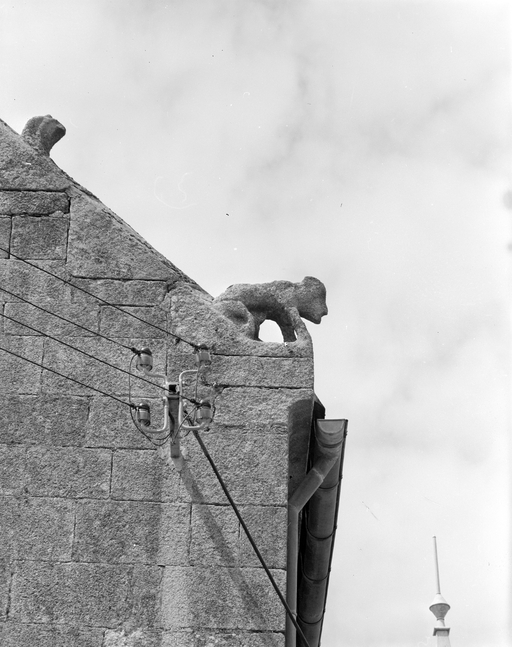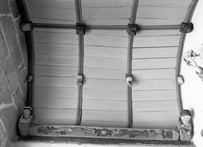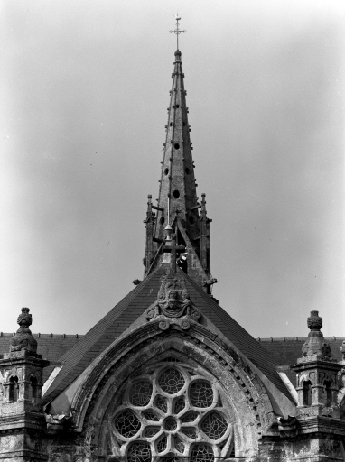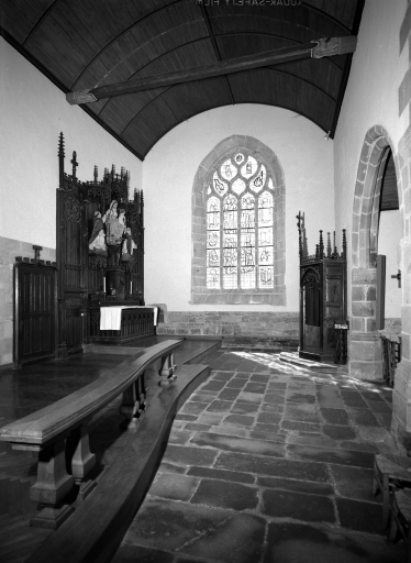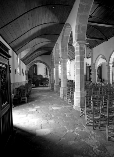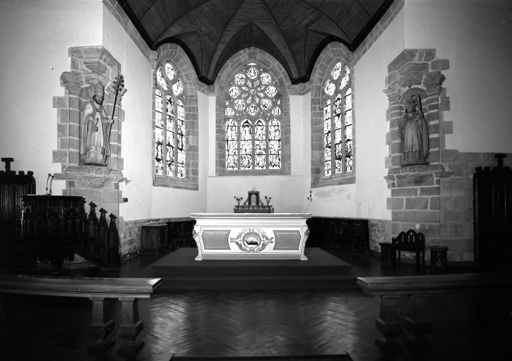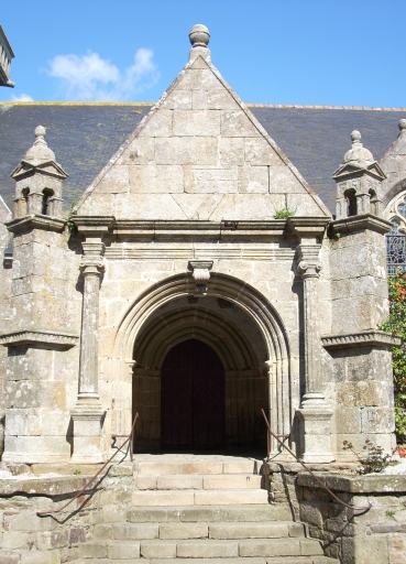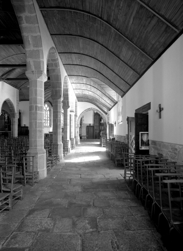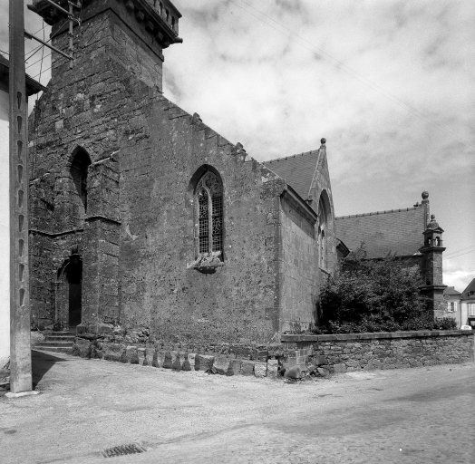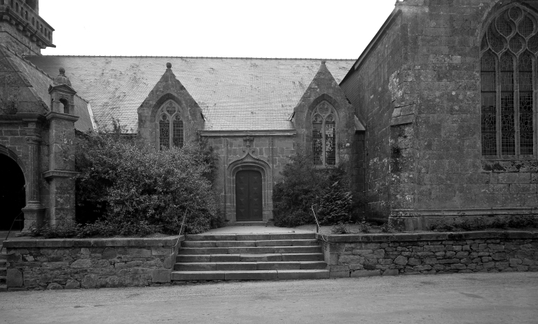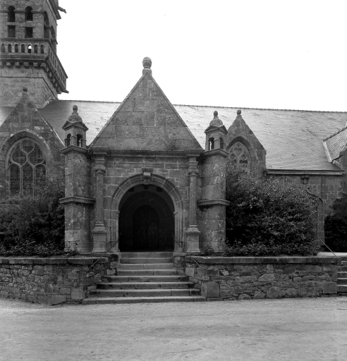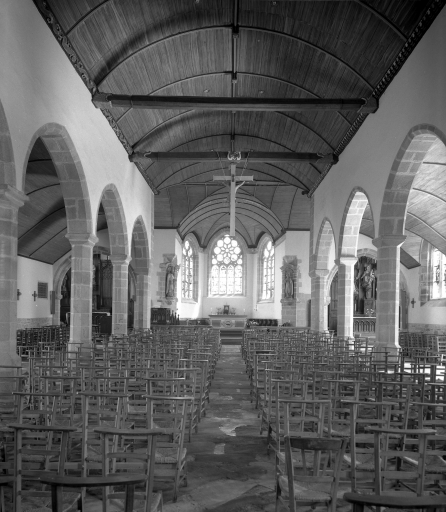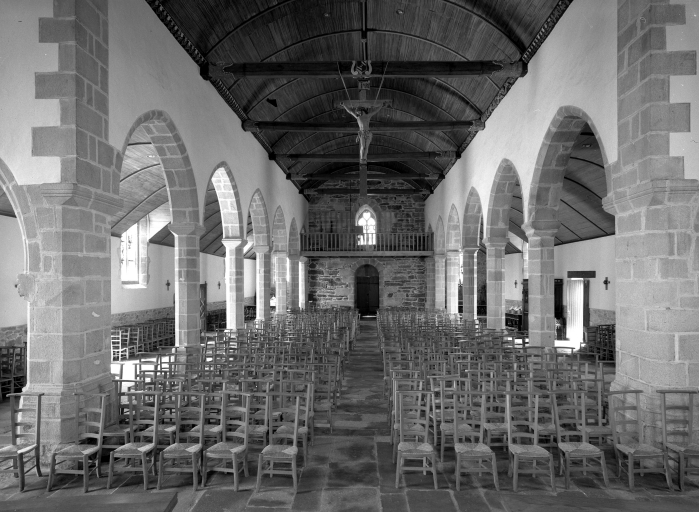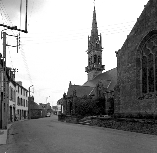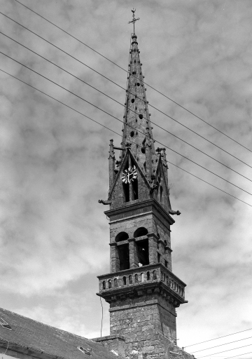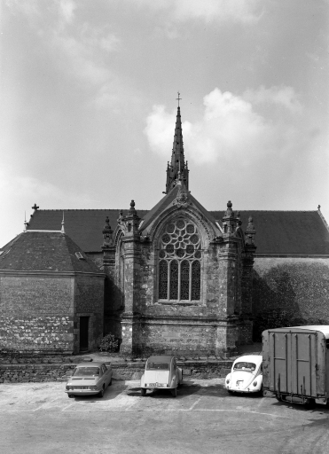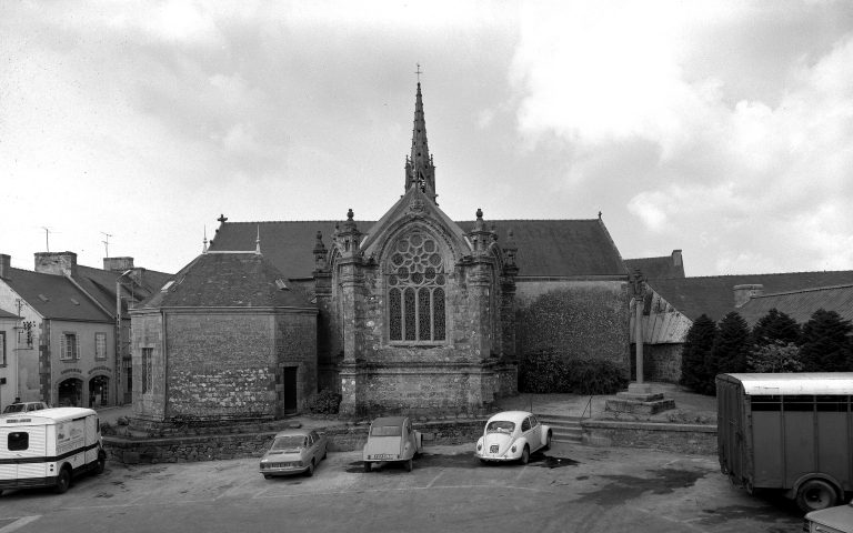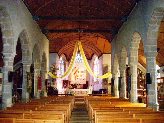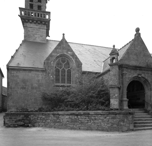 Edifice partiellement néogothique. Le chevet est du même style que ceux de Saint-Nicodème en Ploéven, de Ploaré et du Juch. Fissures au-dessus de l'arcade du bas-côté du transept nord. Edifice associé à une croix monumentale.