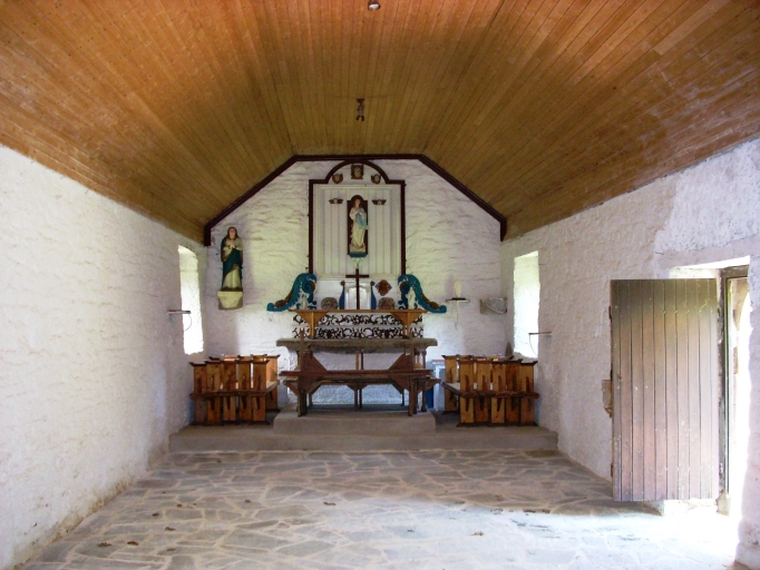 Edifice de plan rectangulaire, à vaisseau unique. Chevet plat. Pignon ouest surmonté d´un clocheton à dôme. Gros oeuvre en moellon de grès, de schiste et de granite, à l´exception des encadrements des baies et des chaînages d´angle, en pierre de taille de granite. Murs intérieurs couverts d´un enduit blanc. Sol couvert de dalles de schiste. Lambris de couvrement moderne.