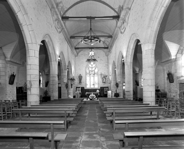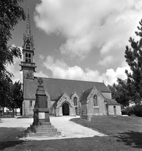 L'ancienne église qui figure sur le cadastre de 1825 remontait au moins partiellement au 15e siècle, à l'exception du clocher construit en 1725. Vitraux milieu 16e siècle remployés dans la chapelle du manoir de Kernault suite à la destruction de l'église. Reconstruction en 1862 d'après les plans de l'architecte diocésain Joseph Bigot ; travaux exécutés par les entrepreneurs en maçonnerie Charles Dubreuil de Quimperlé, Lobin et Jean-Louis Le Naour de Quimper (clocher). Cimetière déplacé, à l'exception du monument sépulcral des familles Duvergier de Kerhorlay et Poulpiquet de Brescanvel, anciens propriétaires du manoir de Kernault (1861-1989).