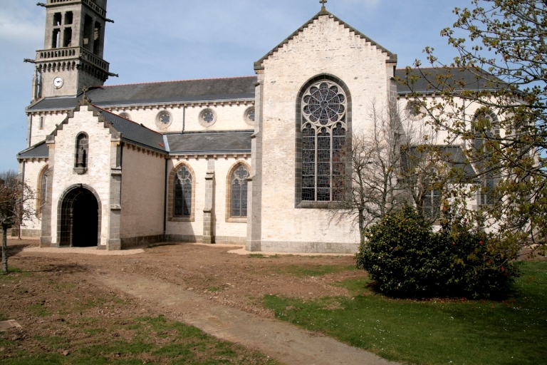 Eglise construite à l'emplacement d'un édifice du 17e siècle dont seul le porche sud daté de 1625 est conservé. Reconstruction en 1868 d'après les plans de l'architecte diocésain Joseph Bigot en collaboration avec son fils Gustave ; travaux exécutés par l'entrepreneur en maçonnerie Guyomard de Morlaix. Le clocher date de 1879, réalisé par Jean-Louis Le Naour de Quimper.