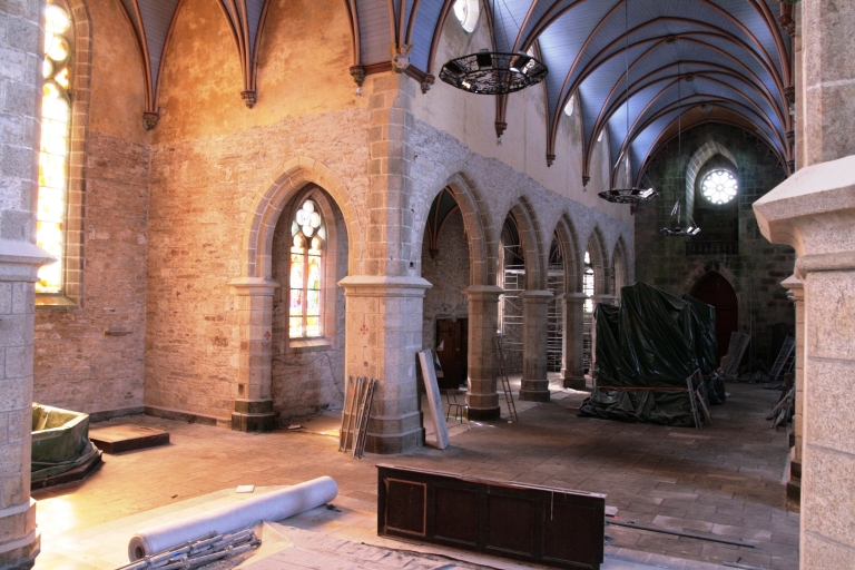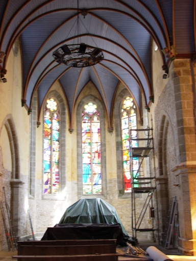 Assainissement et travaux de restauration intérieur en cours. Edifice en bon état. Selon Nolwen Rannou, Joseph Bigot décrit cette église comme un exemple d'architecture de "style ogival du XIV" siècle" mais les remplages rappellent davantage le XIIIe siècle tandis que le portail occidental et la niche qui le surmonte sont néo-flamboyants. Edifice de style néogothique.