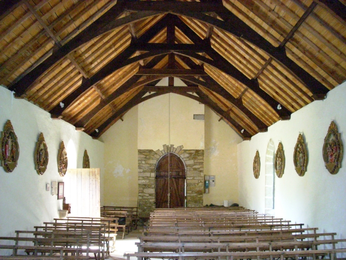 Edifice de plan rectangulaire, à vaisseau unique, avec chevet plat et clocheton triangulaire. Gros oeuvre en moellon enduit de ciment et pierre de taille de granite apparente aux encadrements des portes et des baies en arc brisé et aux chaînages d´angle. Charpente apparente, sol en ciment.