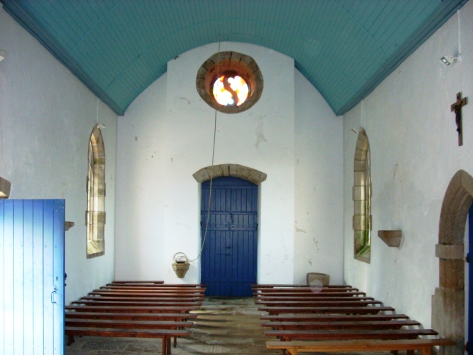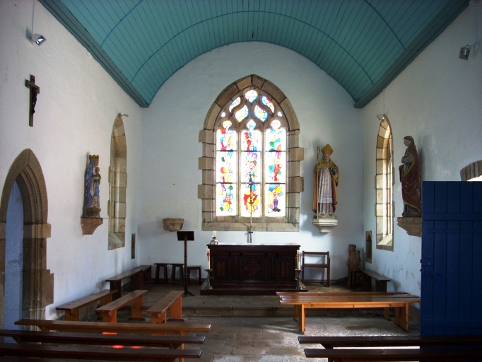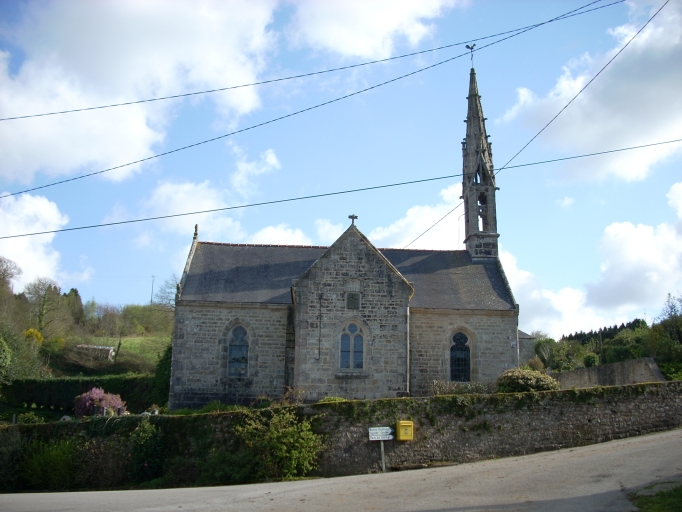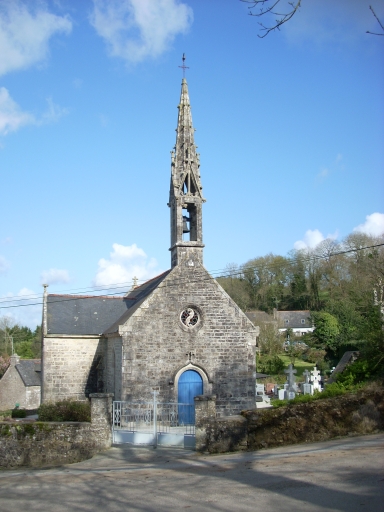 Chapelle située dans un enclos avec cimetière. Edifice de plan rectangulaire à vaisseau unique et chevet plat. Sacristie hors-oeuvre au nord de la nef, probablement l'ancien bras nord du transept. Clocher-mur occidental avec massif percé d´un oculus. Chambre de cloches ajourée et flèche élancée encadrée à sa base par quatre frontons ajourés. Gros oeuvre en moellon équarri de granite et pierre de taille visible aux chaînages d´angle et aux encadrements des baies. Lambris de couvrement peint en bleu, murs enduits de ciment peint en blanc, sol couvert de dalles de granite et de trois pierres tombales.