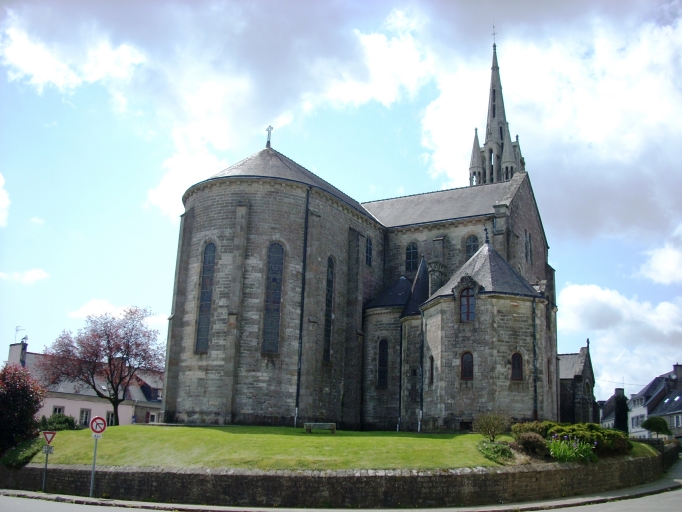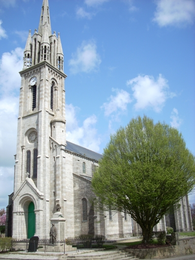 L´église primitive (détruite) du 11e siècle a été modifiée au cours des 15e et 17e siècles. Le curé de la paroisse et la municipalité passèrent la commande à l´architecte diocésain Joseph Bigot pour la réalisation d´une nouvelle église mise en oeuvre par l'entrepreneur Armand Gassis entre 1873 et 1875. L´entrepreneur Jean-Louis Le Naour construit la flèche en 1890. Sur le massif occidental, on peut lire la date de 1875.