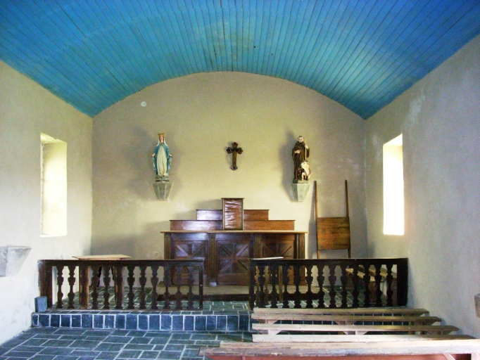Petit édifice de plan rectangulaire à vaisseau unique. Chevet plat. Clocher-mur surmonté d´un clocheton à chambre de cloche de plan carré et d´une flèche en maçonnerie carrée. Gros oeuvre en moellon de grès, de schiste et de granite, à l´exception des encadrements des baies en plein cintre et des chaînages d´angle, en pierre de taille de granite. Murs enduits de ciment à l´intérieur. Lambris de couvrement peint en bleu. Sol couvert de dalles d´ardoise.