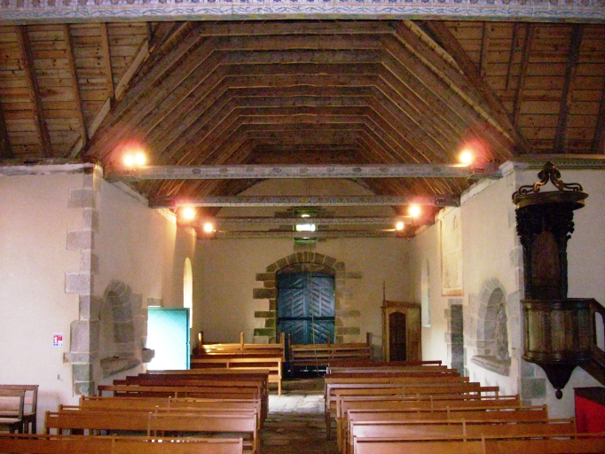 Elle fut fondée en 1685 par les sieurs Le Torcol et Guesdon. Elle est reconstruite et agrandie en 1867 d´après les plans de l´architecte diocésain Joseph Bigot. Restaurations (crépi, toiture) en 1987. Peintures murales du 17e siècle inscrite à l´Inventaire supplémentaire des Monuments Historiques depuis le 23 octobre 1992. Edifice entièrement restauré en 2007.