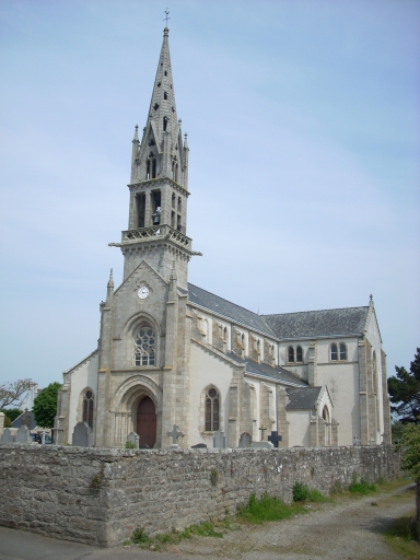 Edifice situé dans un enclos et associé à un cimetière, à un monument aux morts et à une croix monumentale. Sacristie flanquée d´une tour d´angle abritant un escalier en vis comme à Lannilis. Edifice proche de celui d´Hanvec, néogothique (13e siècle), comme Douarnenez et Moëlan-sur-Mer édifiés d'après les plans de Joseph Bigot dans les mêmes années, en collaboration avec son fils Gustave. Etat sanitaire correct mais il existe des problèmes de toiture, qui doit être refaite prochainement. Traces d´humidité sur le mur nord.