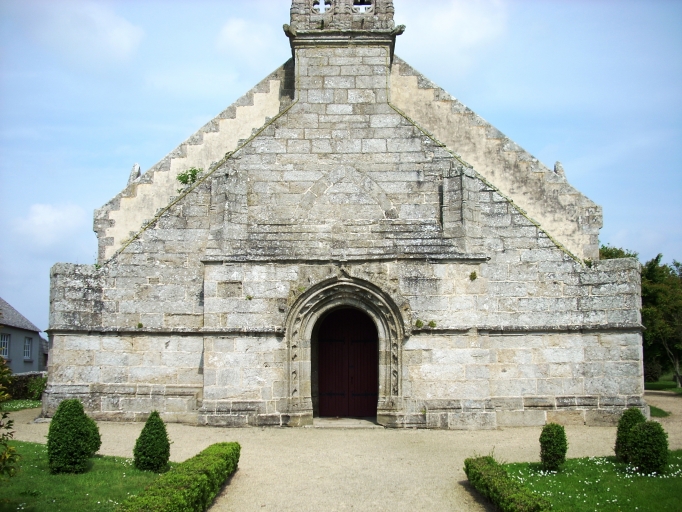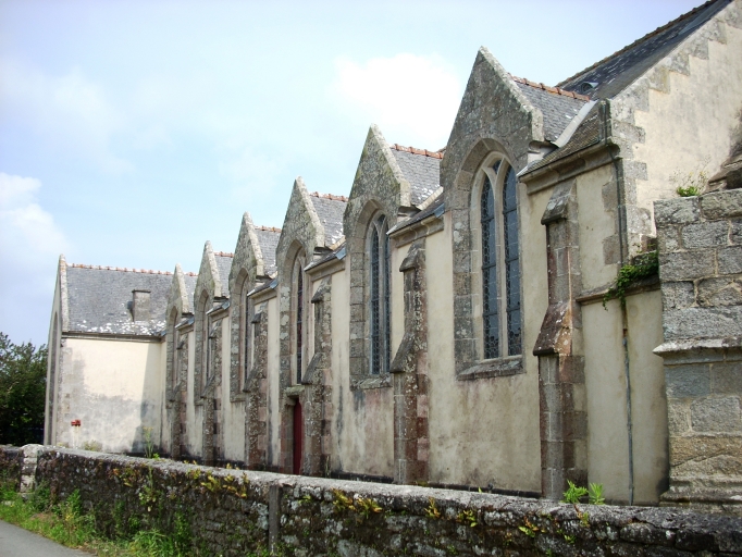 Edifice situé dans un enclos et associé à deux stèles et à un monument aux morts. Etat sanitaire satisfaisant. Humidité visible sur les murs nord et sud. Edifice de style néogothique. L'édifice est à signaler car il est intéressant de comprendre comment l'architecte Joseph Bigot à reconstruit cet édifice en conservant l'élévation ouest. De plus, des menhir marquent l'entrée de l'enclos.