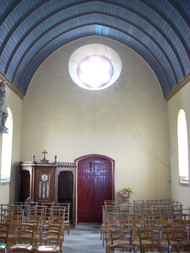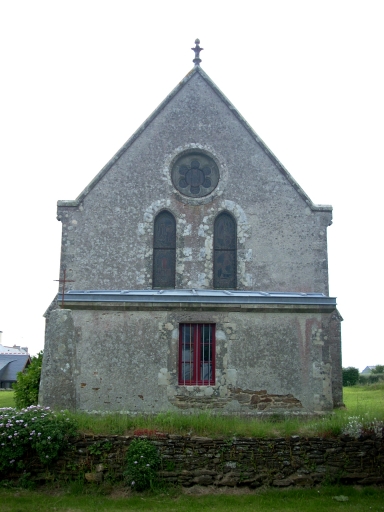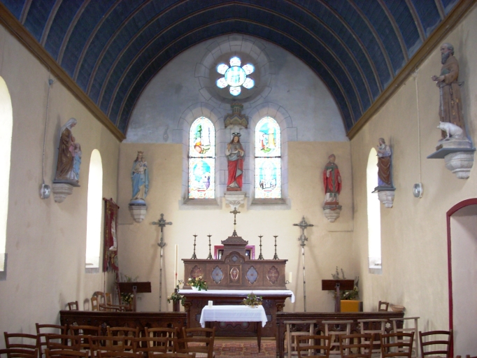 Edifice de plan rectangulaire, à vaisseau unique et chevet plat flanqué d´une sacristie à l'est. Pignon ouest coiffé d'un clocheton. Gros oeuvre en moellon de granite et de schiste enduit, à l´exception des encadrements des baies et des chaînages d´angles, en pierre de taille de granite. Lambris de couvrement peint en bleu, nervures en marron. Sol couvert de ciment.