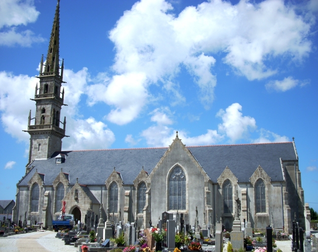 Edifice construit entre 1860 et 1862 d´après les plans de l´architecte diocésain Joseph Bigot par l´entrepreneur Napoléon Ollivier, de Landerneau, et par Lapierre, de Brest, pour les parties sculptées. Le pignon ouest porte la date de 1861.