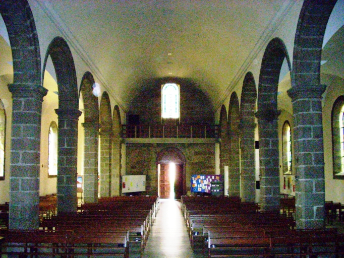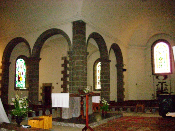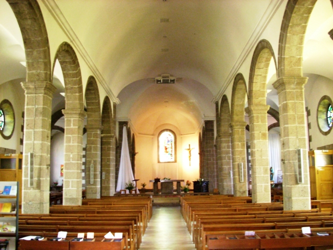 Plan en croix latine à trois vaisseaux. Chevet à pans coupés flanqué de deux sacristies au sud de plan rectangulaire. Clocher à deux galeries et deux étages de cloches amortis d´un dôme à lanternon. Gros oeuvre en moellon de granite enduit de ciment, à l´exception des encadrements de baies et des chaînages d´angle, en pierre de taille de granite. Nef obscure à six travées, à fausse-voûte en arc plein-cintre surbaissé. Choeur et bras du transept à trois vaisseaux à deux travées se terminant par une abside polygonale. Arcades en plein-cintre reposant sur les chapiteaux des piliers carrés chanfreinés. Sol couvert de ciment.