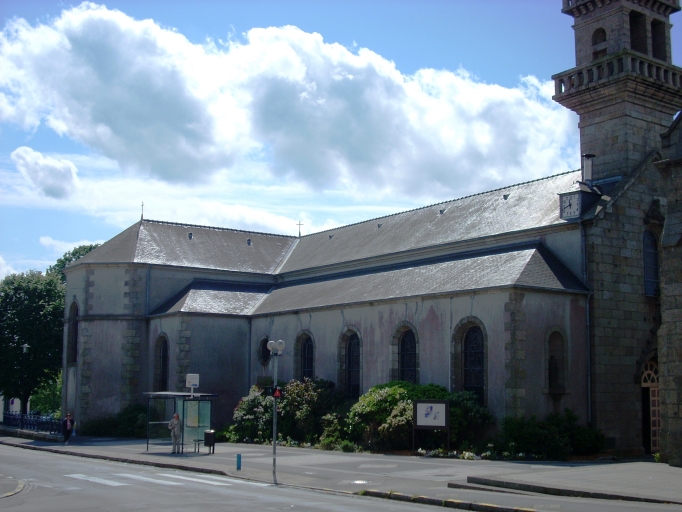 Bon état sanitaire. Edifice de style néo-classique. Porte occidentale néo-flamboyante. Clocher néo-Renaissance bretonne.