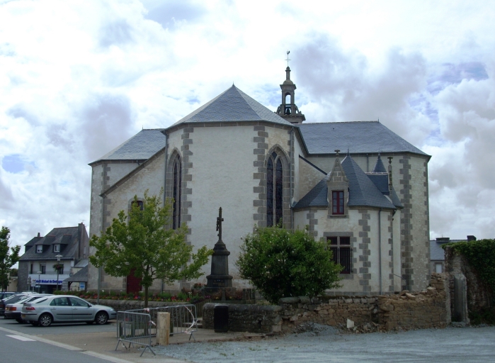 Edifice de style néo-classique dans la structure avec des éléments néogothiques, clocher classique (ou d´inspiration Renaissance bretonne). Edifice en bon état. Edifice associé à une croix monumentale et à un monument aux morts.