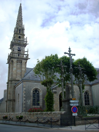 Edifice construit entre 1847 et 1848, d´après les plans de l´architecte diocésain Joseph Bigot, par l´entrepreneur Napoléon Ollivier. Il remplace l´église du 18e siècle dont le clocher de 1701construit par Christophe Kerandel, père et fils et par François Gourves, a été conservé.