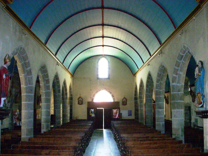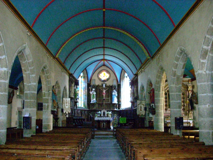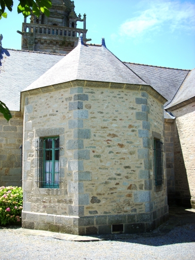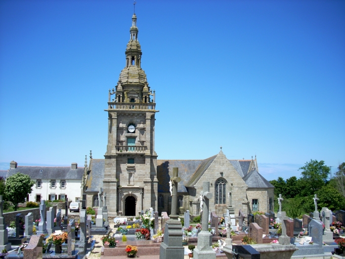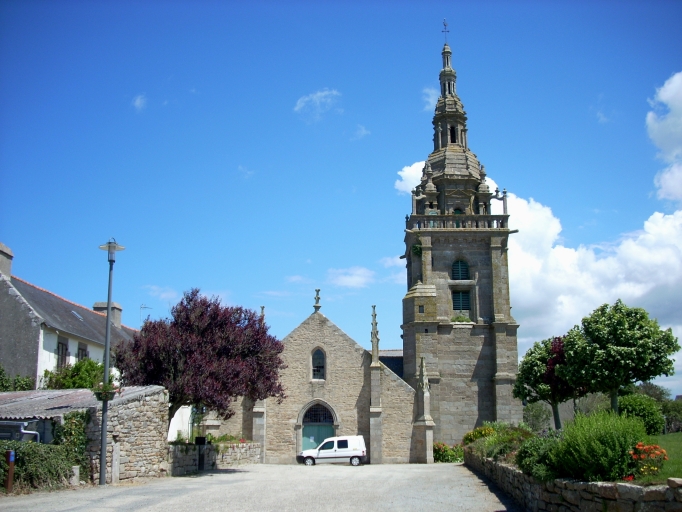 Edifice reconstruit en 1856 d´après les plans de l´architecte Ernest Le Guerrannic à l'exception du clocher-porche (1622) et de la porte nord du 16e siècle.