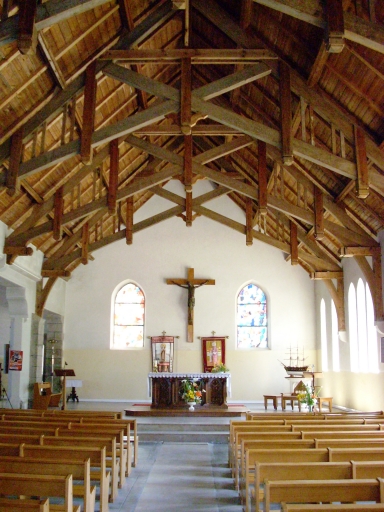 Edifice construit en 1860 d´après les plans de l´architecte Ernest Le Guerrannic. Agrandie en 1921 puis en 1953 d´après les plans de l´architecte Lionel Heuzé de Morlaix, le choeur est déplacé dans la nouvelle nef située au sud de l´ancienne.