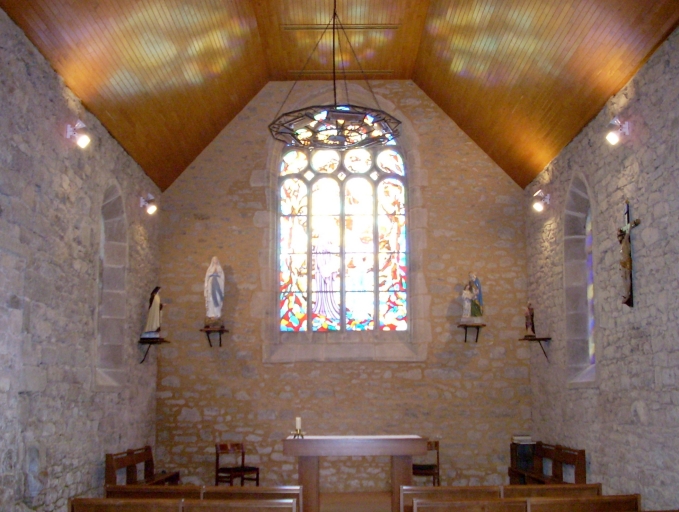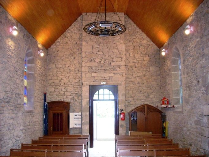 Plan rectangulaire à vaisseau unique. Chevet plat. Clocher-mur à chambre de cloches ajourée amortie d´une courte flèche ornée de crossettes. Gros oeuvre en moellon de granite, à l´exception des encadrements des baies et des chaînages d´angle, en pierre de taille de granite. Lambris de couvrement. Sol couvert de dalles de granite.