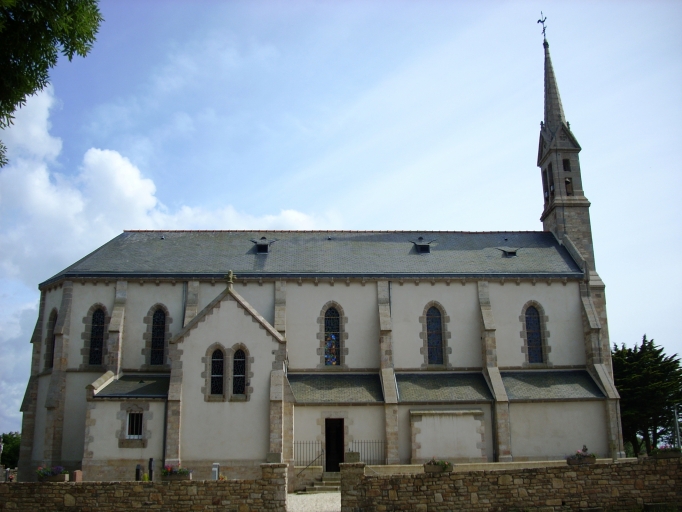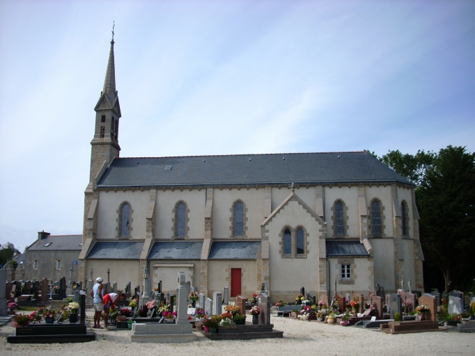 Edifice reconstruit en 1876 (date sur le pignon ouest) d´après les plans de l´architecte Ernest Le Guerrannic.