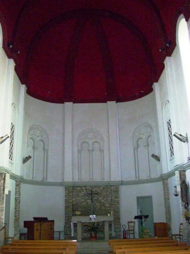 Plan rectangulaire à vaisseau unique. Pas de clocher. Chevet plat. Gros oeuvre en moellon de granite partiellement enduit de ciment, à l´exception des encadrements des baies et des chaînages d´angle, en pierre de taille de granite. Nef haute à fausse-voûte en plein-cintre peinte en rouge. Sol couvert de ciment.