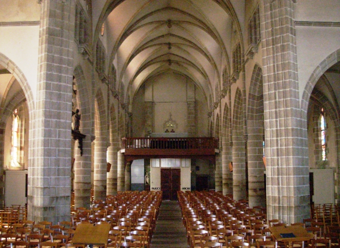 Edifice reconstruit en 1889 d´après les plans de l´architecte Ernest Le Guerrannic. Le clocher de 1734 construit d´après les plans de l´architecte Roussel par Yves Le Sich, porte une inscription.