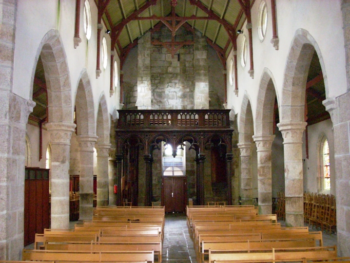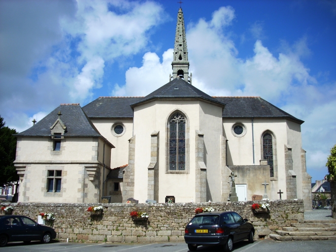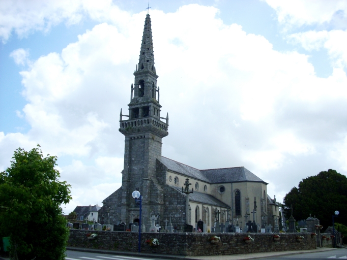Edifice reconstruit entre 1865 et 1866 (date sur le porche sud) d´après les plans de l´architecte Bourdais de Brest. Le clocher porte la date de 1637 mais il a été reconstruit en 1827.