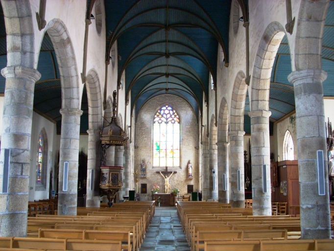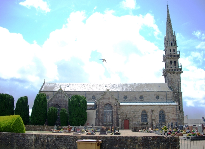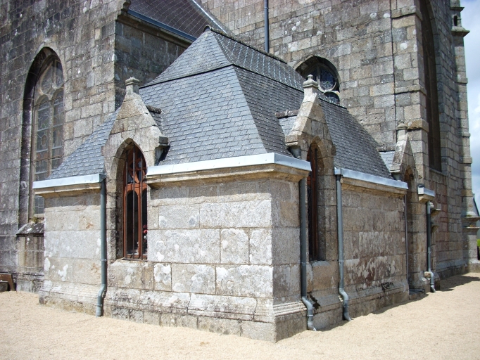 Edifice situé dans un enclos avec cimetière et calvaire. Edifice de style néogothique mais comme à Saint-Derrien, l´église possède des arcades plein-cintre et des baies gothiques. Etat sanitaire non satisfaisant : le lambris est en mauvais état, l´enduit se décolle sur les murs sud et nord et des traces d´humidité y sont présentes, des fissures sont apparentes à côté de la première baie sud, le sol est très humide.