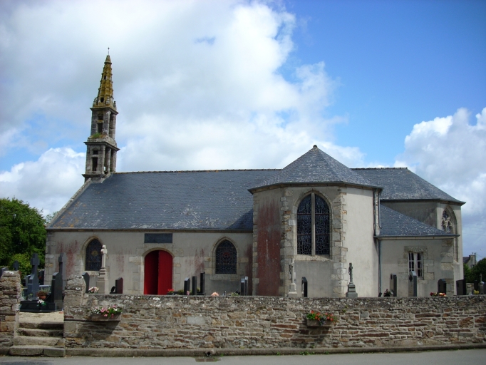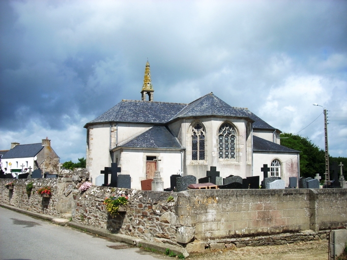 Edifice de style néogothique. Edifice situé dans un enclos avec cimetière. Etat sanitaire non satisfaisant : le lambris est en mauvais état, l´enduit se décolle et des traces d´humidité sont apparentes sur les murs nord et sud, des fissures sont apparentes au-dessus des baies sud. Clocher similaire à celui de Tréflaouénan.