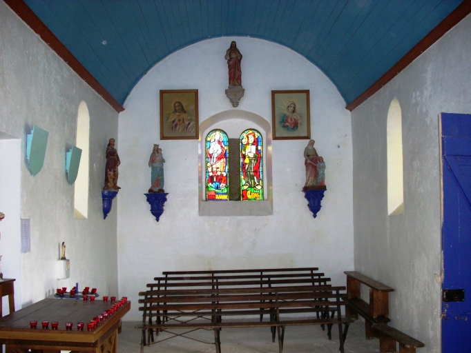 Plan rectangulaire à vaisseau unique. Chevet plat. Clocheton à l'ouest. Gros oeuvre en moellon de granite enduit de ciment à l´exception des encadrements de baies et des chaînages d´angle en pierre de taille de granite. Lambris de couvrement peint en bleu. Sol couvert de ciment.