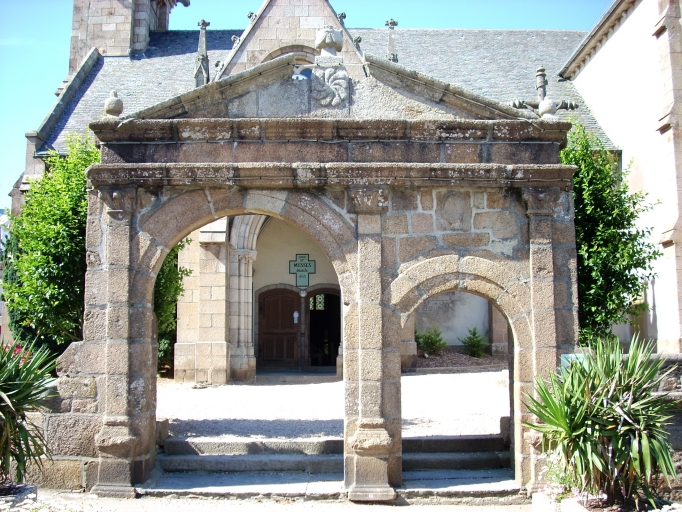 Edifice situé dans un enclos et associé à un monument aux morts. Face au porche, la porte monumentale de l'enclos inscrite en 1968, du 17e siècle, provient du manoir de Kerangoagnet (même commune) et a été remontée à l´entrée de l´enclos en 1935. Edifice de style néogothique. Bon état sanitaire.