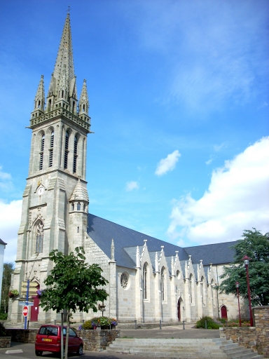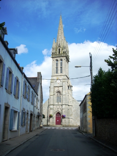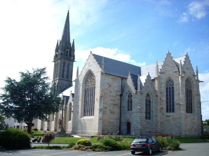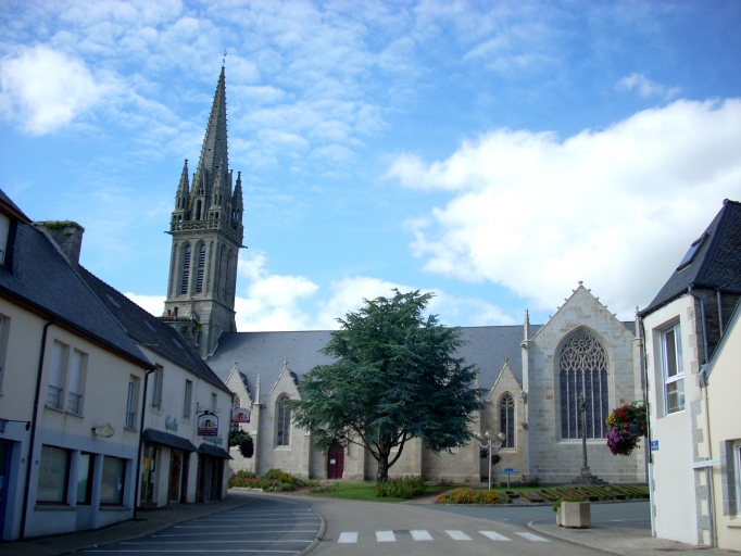 Ancienne église bâtie à la fin du 15e siècle (détruit), probablement d´après les plans de l´architecte Philippe Beaumanoir. Edifice agrandi entre 1837 et 1840 d´après les plans de l´architecte Théodore Boyer de Morlaix, dont il ne reste probablement rien. Un nouvel édifice est construit en 1863 d´après les plans de l´architecte Léon en conservant l´ancien chevet qui sera reconstruit en 1883. Clocher construit en 1895 d´après les plans de l´architecte Ernest Le Guerrannic.