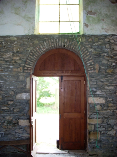 Plan rectangulaire à vaisseau unique. Chevet plat. Pignon ouest surmonté d'un clocheton. Gros oeuvre en moellon de granite et de schiste enduit, à l´exception des encadrements des baies et des chaînages d´angle, en pierre de taille de granite. Charpente en bois apparente. Sol couvert de dalle de granite et de ciment.
