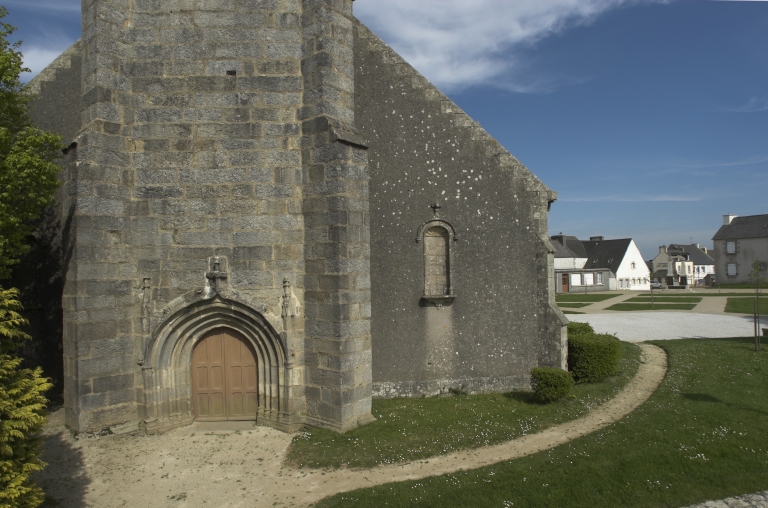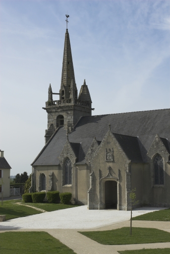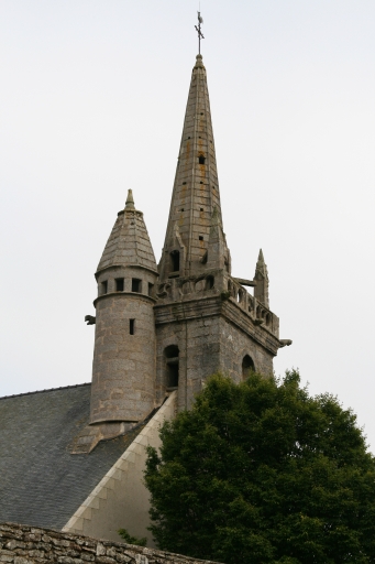 Le clocher avec sa tourelle d'escalier présente des parentés avec des réalisations contemporaines du Trégor voisin (Ploumilliau). L'architecte Jules Boyer, adepte du style néogothique, est l'auteur de plusieurs églises du P.N.R.A. dont celles de Pont-de-Buis-lès-Quimerc'h et La Feuillée. Site des Monts d'Arrée (site pluricommunal). Site Inscrit : arrêté du 10/01/1966.