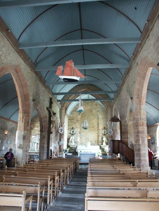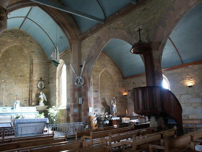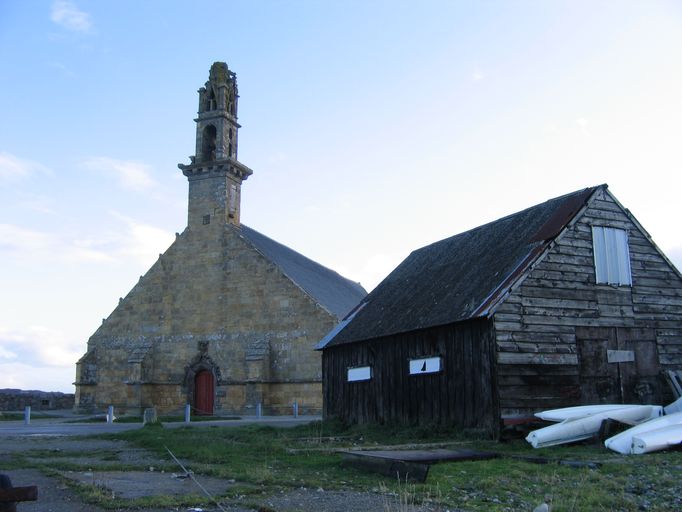 Cette chapelle, basse, fait 25 m de long pour 13,5 m de large. En pierre de Logonna, elle présente une nef principale se prolongeant par un choeur et une sacristie au N-E. Les deux bas-côtés sont pourvus de 4 arcades chacun (plein cintre et ogivale). Après l´incendie de 1910, la charpente fut reconstruite par François Keraudren, charpentier de marine, en forme de coque renversée, lambrissée et peinte en bleu. François-Joseph Keraudren a également réalisé la chaire en 1914-1915. La grande fenêtre en ogive fut murée pour la protéger des projections de galets lors des tempêtes. Les trois portes sont dotées d´un entourage en granite de Kersanton.