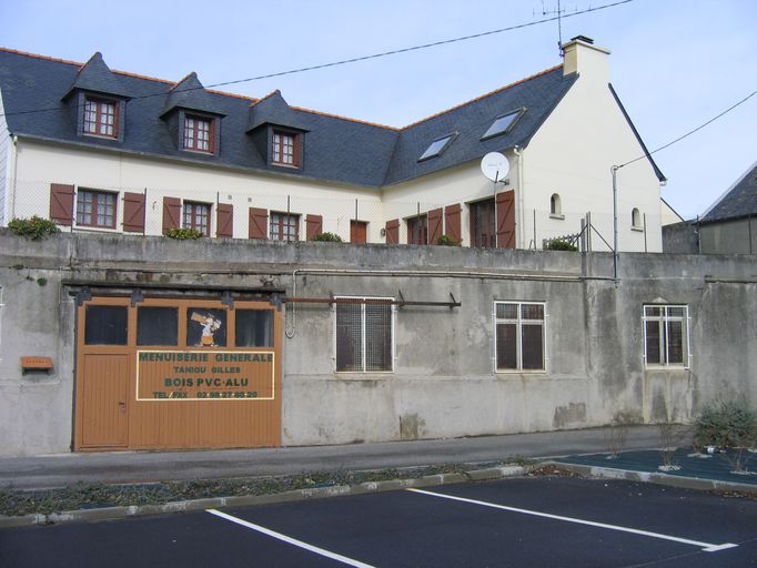 Bâtiment d´un étage, surmonté de combles, construit en pierre de taille et crépi. Encadrement simple des ouvertures en granite. Couverture en ardoises. Dans le toit, deux chiens-assis dont le fronton triangulaire est surmonté d´un faîtage travaillé en poterie. Ce bâtiment devait servir d´appartement pour le gérant, de vestiaire pour les ouvrières et de lieu de stockage pour le matériel (huile et boîtes de conserves). A l´arrière, un bâtiment de facture ordinaire servait d´atelier et d´usine. Le toit plat est constitué d´une terrasse (en partie construite désormais) ou séchaient les sardines. Un troisième bâtiment à l´arrière servait de chambre froide (pains de liège compressés). Ce bâtiment abrita par la suite la forge et la salle à tracé pour le chantier d´Albert Péron. Aujourd´hui c´est un atelier de menuiserie.