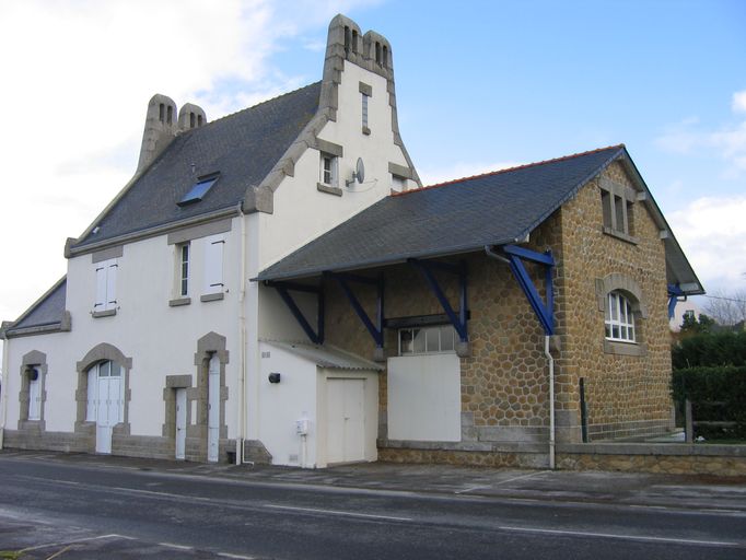 Corps central d´un étage, de 9 m de long et 5 m de large, surmonté de combles, flanqué de deux constructions comportant chacune un rez-de-chaussée surmonté d´un comble. Construction en pierres maçonnées avec enduit, encadrement travaillé des ouvertures en granite. Couverture d´ardoises. Présence de deux paires de cheminées ornementales en granite, faisant songer à des coiffes bretonnes, ce qui explique le surnom des gares de ce réseau : « Les Bigoudènes ».