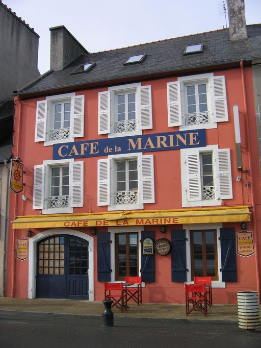 L´ancien hôtel de la Marine était composé de deux bâtiments aujourd´hui bien distincts. Les deux sont bâtis de la même façon : deux étages et des pièces sous mansardes. L´ensemble fait environ 14 m sur 7 m. Dans le cas du bâtiment qui sert encore aujourd´hui de café, le rez-de-chaussée a été peu modifié et les ouvertures semblent d´époque, les étages ont conservé leurs ouvertures d´origine et les garde-corps en fonte travaillés. La toiture est en ardoises et les lucarnes ont disparu. Le bâtiment est en pierre recouvert d´un crépi rose. En ce qui concerne l´autre bâtiment servant uniquement de logement, le rez-de-chaussée a été très modifié, tandis que les étages et la toiture ont gardé leurs formes d´origine, notamment avec les chiens-assis. Là aussi, le toit est en ardoises et le mur est recouvert d´un crépi de ciment gris.