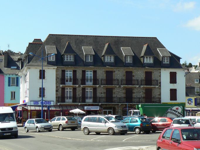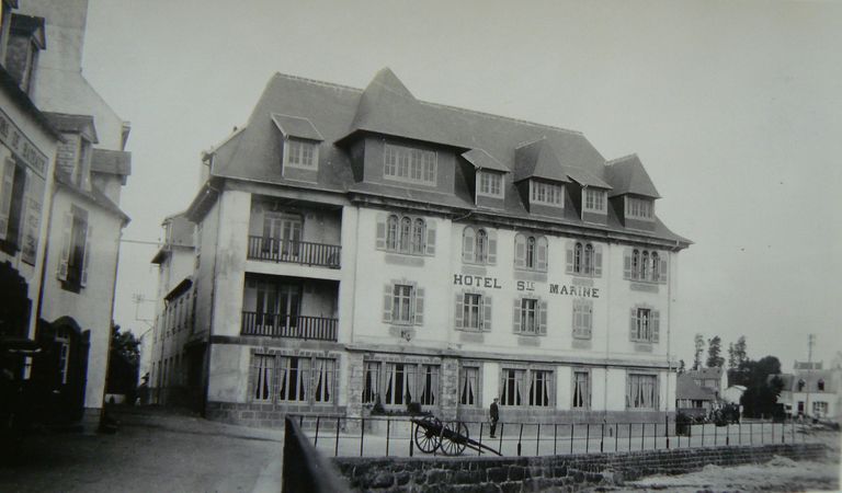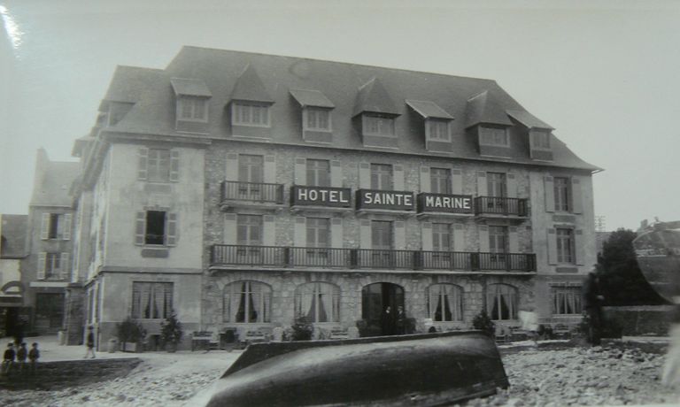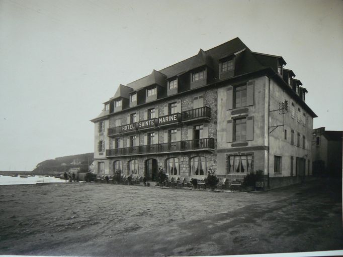 Au 19e siècle, le site de l´actuel immeuble Les Flots était bien différent de celui d´aujourd´hui. À cet endroit, le Loc´h (étang), qui séparait Morgat en deux parties, débouchait sur la plage, à proximité de la conserverie de sardines Poriel construite à la fin du 19e siècle. En avant de cette conserverie se trouvaient plusieurs magasins, probablement utilisés pour la pêche, appartenant à des habitants du bourg de Crozon. Le cadastre signale que les magasins ont été réaménagés en 1900 en habitations. Certaines sont importantes, puisque l´une d´elles compte une porte cochère et 25 ouvertures. Reprenant le nom de l´ancienne chapelle de Morgat, l´hôtel Sainte-Marine - qui deviendra l´immeuble les Flots - aménagé à partir du bâti de cette grande maison, existe certainement déjà, avec à sa tête, durant la première moitié du 20e siècle, Joseph Kerdreux, d´abord boulanger puis maître d´hôtel. Dans les années 1920 et en 1931, l´hôtel connaît plusieurs modifications. Le rehaussement qui a lieu en 1947 lui confère sa silhouette présente. L´hôtel est finalement transformé en immeuble de résidences particulières dont le restaurant Les Flots occupe le rez-de-chaussée.