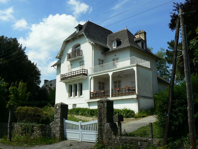 - RECO Bien qu´elle ne soit pas citée nommément par la population interrogée, cette villa a un intérêt patrimonial lié à son aspect monumental et à son architecture. Située dans le périmètre de protection de la villa Ker-ar-Bruck, classée aux Monuments Historiques, elle est un peu moins menacée par d´éventuelles transformations que certaines autres villas pourraient l´être. Il serait néanmoins souhaitable qu´elle soit également intégrée à une éventuelle ZPPAUP. Plus généralement, pour éviter une banalisation de la station balnéaire de Morgat et limiter le risque densification du bâti par constructions interstitielles, il serait par ailleurs souhaitable qu´à l´instar de l´ancien cahier de charge du lotissement Peugeot, une véritable charte d´urbanisme de l´ensemble du secteur de Morgat soit élaborée par la commune intégrant le quartier balnéaire de Morgat, avec des recommandations spécifiques concernant l´évolution du lotissement, la rénovation du bâti, le plan de circulation, la mise en valeur paysagère et architecturale du patrimoine de ce quartier. Un circuit pédestre de découverte de la station balnéaire passant par cette villa pourrait ainsi être mis en place.