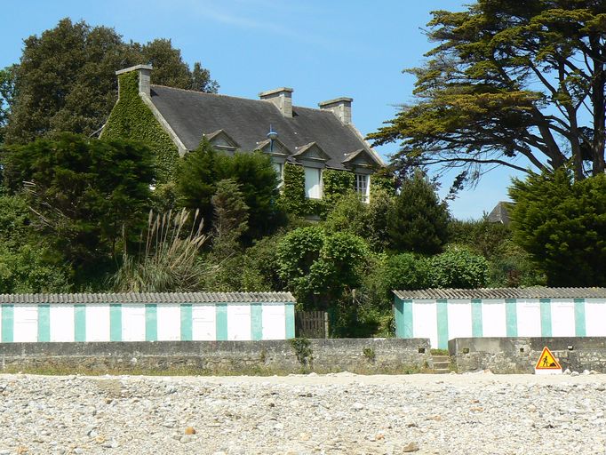 Située à l´endroit où le boulevard de la Plage est quasiment à sa plus haute altitude, plaquée contre la rue Armand Peugeot pour profiter de la déclivité du terrain et être surélevée par rapport à ce boulevard, la villa Ker Gan Avel possède une vue idéale sur la mer. Légèrement orientée vers la pointe de Rulianec, elle est conçue sur un plan de forme rectangulaire. Cette grande villa est d´allure plutôt sobre. Comme toutes les villas de cette rue, la façade la plus soignée est la façade arrière qui donne sur mer. Ici, quatre travées d´ouvertures rythment le mur, fenêtres surmontées de lucarnes au fronton triangulaire. L´encadrement des ouvertures est en pierre de taille, tandis que les murs crépis sont actuellement couverts de végétation. Les pignons sont prolongés de souches de cheminées tandis qu´une troisième souche émerge au centre du toit. Cette réalisation de Gaston Chabal, daté de 1956-57, marque sa tendance à épurer de plus en plus ses oeuvres au fil des années.