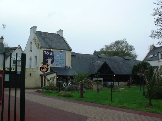 L´organisation des bâtiments de l´usine du « bas » obéissait à un schéma classique : en entrant dans la cour de l´usine qui existe toujours, outre les bureaux, on observait une série d´ateliers servant à l´étêtage, au lavage et au séchage du poisson. Ces ateliers se trouvaient dans la longue bâtisse sans étage (d´une trentaine de mètres) recouverte d´ardoises qui constitue le corps du restaurant actuel. L´ancien grenier de l´usine a permis d´agrandir les volumes intérieurs de la salle à manger. Les murs extérieurs sont aujourd´hui en pierres apparentes soigneusement rejointoyées. Le schéma des ouvertures actuelles : neuf fenêtres aux dimensions identiques, de 1,20 m de large pour 0,60 m de hauteur et ceinturées de blocs de granite, à l´image de la porte, correspond à la morphologie de cette partie de l´ancienne usine. Faisant suite à ce corps de bâtiment, à l´ouest, l´actuelle petite maison blanche à un étage devait abriter les bureaux et le logement du contremaître. Par ailleurs, le mur d´enceinte de la cour de l´usine a gardé son aspect d´origine et constitue encore aujourd´hui le mur d´enceinte du jardin du restaurant. D´une longueur de 60 m et d´une hauteur de 1,80 m, il est réalisé dans un appareil irrégulier de grosses pierres jointes au mortier. L´entrée de l´usine matérialisée par deux piliers constitués de blocs en granite bien assemblés et de la même hauteur que le reste du mur est l´actuelle entrée du restaurant.