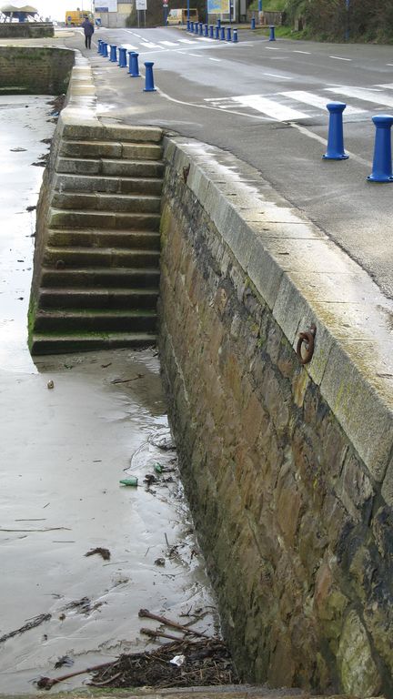 Le quai neuf (1887) a une longueur de 260 m, pour une hauteur de 4 m, il présente un parement en pierres maçonnées avec de gros blocs de granite. Le mur fait 2 m d´épaisseur à sa base et 1 m à son somment, des pierres de couronnement large de 0,60 m recouvrent cette partie supérieure. Les falaises voisines fournissent les remblais et seulement une partie des pierres, car l´essentiel des blocs proviennent de la Montagne de Locronan. Un double escalier est aménagé au milieu de chaque tronçon, chacun mesure 16,60 m de longueur et des marches d´une largeur de 1,50 m conduisent, 3,30 m plus bas, à un palier de 3 m par 1,50 m. Le coût total atteint 56 197, 50 francs.