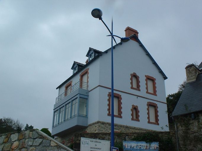 Dominant la plage et les quais, cette maison bâtie sur un plan carré de 11 m sur 11 m possède deux étages et de très nombreuses ouvertures. Si le volume d´ensemble du bâtiment et l´emplacement des ouvertures ont été respectés, des transformations très récentes ont modifié l´aspect de la façade : les deux fenêtres d´origine ont été remplacées par un oriel (bow-window) surmonté d´un balcon, les côtés des chiens assis ne sont plus en bois mais en verre et une entrée latérale moderne à été ajoutée, les pierres apparentes du rez-de-chaussée ont été rejointoyées à la chaux. Le reste de la maison est actuellement recouvert d´un enduit peint d´un bleu clair, selon le goût d´aujourd´hui.