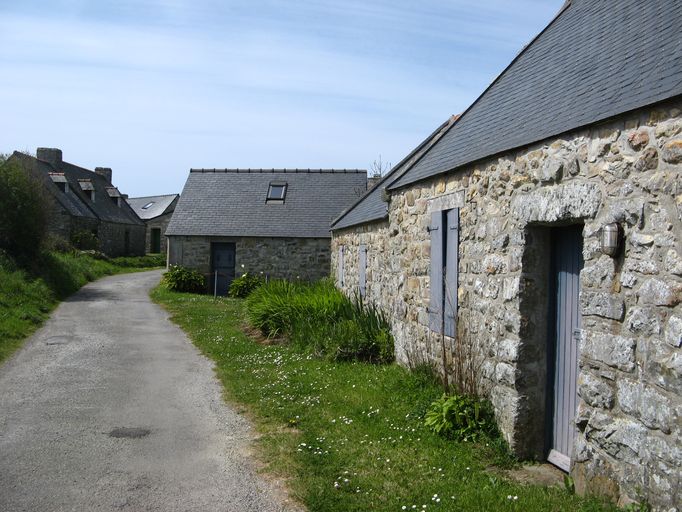 Le long de la côte de la presqu´île de Crozon, on observe de modestes hameaux, appelés ici « villages », bénéficiant d´un accès direct à la grève et construits sur un modèle de petites maisons basses serrées les unes contre les autres pour résister aux vents balayant cette côte ouverte sur le large (habitat bioclimatique). Leur construction, en grès, quartzite ou dolérite, date, le plus souvent, des 17e et 18e siècles. Ces maisons et dépendances servaient à la fois d´habitat et de remises pour les travaux agricoles, de crèche pour la vache et le cochon et éventuellement d´abri pour les quelques engins de pêche de la famille. Ces écarts ne sont que très partiellement liés au maritime, cependant la pêche a toujours apporté un complément alimentaire pour les familles et souvent un revenu annexe, avec les petits surplus agricoles qui étaient commercialisés. Peut-on pour autant qualifier les habitants de ces hameaux de paysans-pêcheurs ? La réponse est négative car jusqu´aux années 1850 ces hameaux sont habités par des paysans et paysannes pour lesquels la pêche et le ramassage des produits de la mer ne représentent qu´une activité secondaire (poissons, coquillages), cette dernière activité étant souvent dévolue aux femmes et aux enfants. Néanmoins, cette ressource a eu de tout temps son importance dans la vie de ces populations souvent pauvres et surtout, à partir de la fin du 19e siècle, les hommes ont travaillé en grand nombre sur les bateaux de pêche de Morgat et Camaret alors en essor. Cependant ces hameaux se dépeuplent dès l´entre deux-guerres en raison des mutations du monde agricole, de la professionnalisation de la pêche, de l´attrait pour les carrières plus sûres et plus rémunératrices offertes par la marine militaire et l´arsenal brestois tout proche. Ainsi, le recensement de 1954 cite de nombreux « chauffeurs, fraiseurs, mécaniciens » habitant le cap de la Chèvre ou Crozon. Ces données mettent aussi en évidence le nombre grandissant de retraités, vivant dans ces écarts de plus en plus désertés. Aujourd´hui les hameaux du cap de la Chèvre renaissent, mais c'est en tant que lieux de villégiature qu'ils accueillent une population bien différente de celle d´origine, attirée par la proximité de la mer et la beauté des paysages littoraux de cette presqu'île.