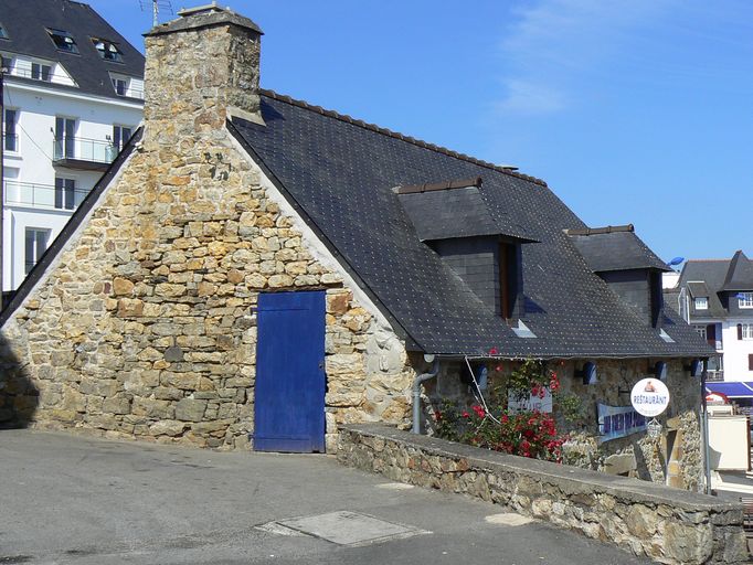 Le restaurant actuel Au pied du port fait partie, au milieu du 19e siècle, d´un alignement de magasins de pêche, utiles aux pêcheurs car à proximité du port. Ce bâtiment est intéressant car il a conservé la trace de l´ancienne rampe, droite, qui menait à la fontaine du Kador, avec un certain désordre dans les pierres de la base de la maison, voire, à gauche de la façade principale, une absence de pierres à la base du mur. Cette rampe a été modifiée en 1890, pour former une épingle. Le magasin de pêche a été transformé au 20e siècle pour devenir un restaurant, sans que le cadastre n´offre de précision.
