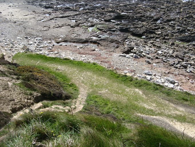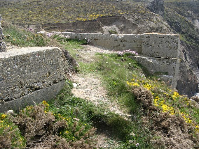 Une rampe de plusieurs dizaines de mètres de long, encore en partie conservée, a été taillée dans la roche pour accéder à la grève. Les vestiges d'un poste de chargement de galets subsistent en haut de la falaise dans une crique, au sud-est de la rampe : mur de 5 m de long sur 2 m de haut et 2 restes de murs.