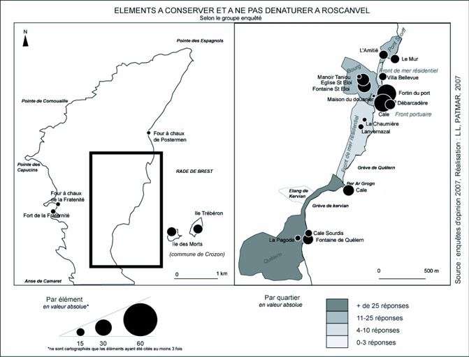 À partir de l´établissement de liaisons maritimes régulières à vapeur entre Brest et Roscanvel (dernier tiers du 19e siècle) - et surtout de la construction de la cale de Quélern en 1901 (pour des besoins militaires) - et jusqu´à la généralisation du moyen de déplacement individuel qu´est l´automobile (début des années 1960), cette presqu´île devient également un lieu de promenade populaire dominicale pour les Brestois. Au début du 20e siècle, la Société Anonyme des Vapeurs brestois (créée en 1894) établit une ligne régulière Brest-Quélern et encourage les sorties du dimanche des Brestois, particulièrement appréciées des familles des soldats et des « coloniaux » du 2° RAS qui peuvent ainsi leur rendre visite dans leur cantonnement. Dès lors, une sorte de rite de promenade s´établit : débarquement à Quélern, promenade à pied jusqu´à la pointe des Espagnols ou passage des lignes de Quélern et descente vers la plage de Trez Rouz en direction de Camaret.