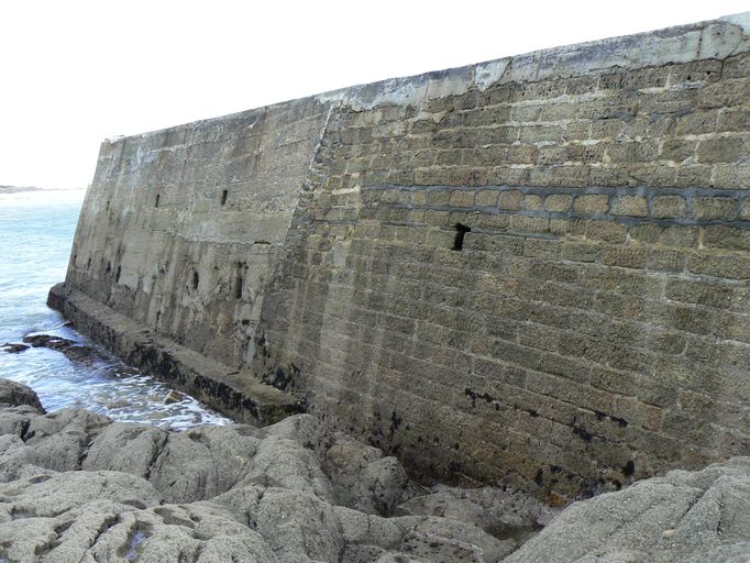 - RECO Le môle et une partie du barrage ont été renforcés par du béton, au niveau du parement et du couronnement. Or, il faudrait au contraire veiller au maintien des pierres de taille apparentes et limiter les colmatages d´urgence à l´aide de ciment qui crée peu à peu une situation irréversible. La digue est en effet l´un des premiers éléments que découvrent les plaisanciers qui arrivent à Doëlan : elle participe à l´intérêt paysager de l´ensemble.