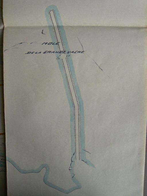 Archives départementales du Finistère. 4 S Supplément 1473. Travaux portuaires : Affaires diverses concernant entre autres le quai de Kernabat, la construction d'un môle-abri, plan (1897-1938).
